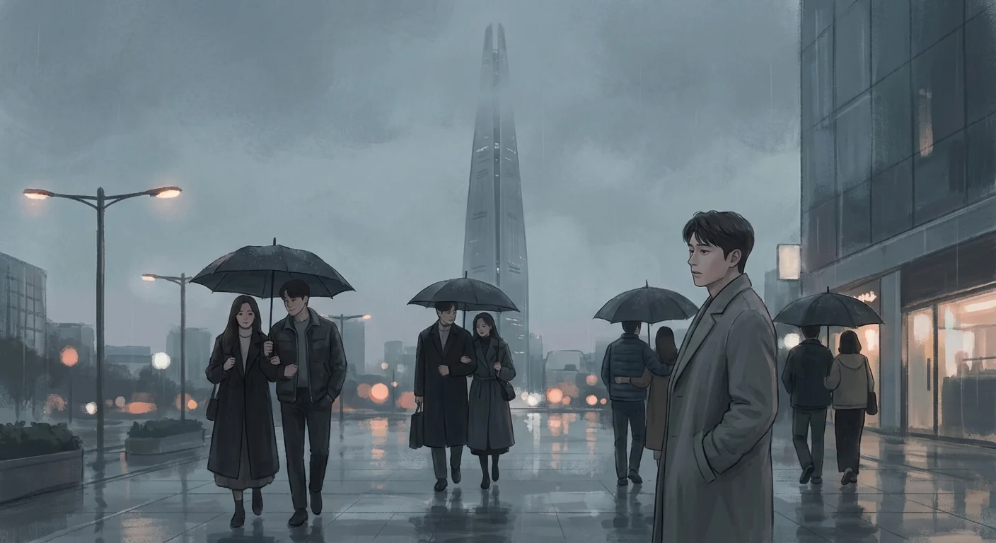 롯데타워 밑, 우중충한 11월